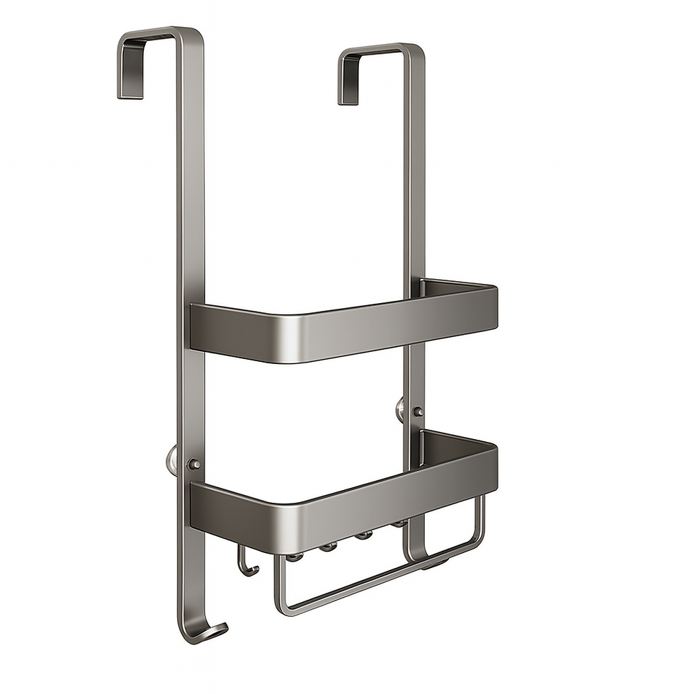 🚿 מדף אמבטיה דו-קומתי לתלייה – אלומיניום כרום